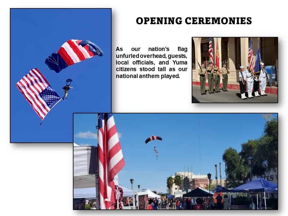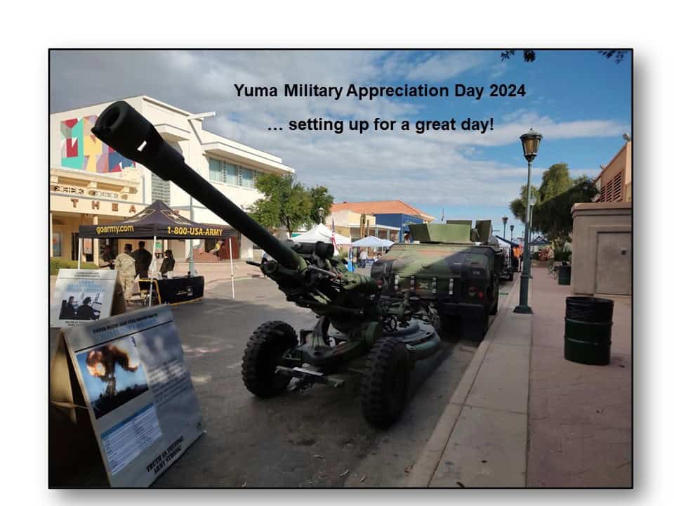Celebrating Yuma’s historic connection with our military, hundreds of veterans and local families converged to peruse VET service and youth leadership info booths, view live K9 and EOD robotic demonstrations, enjoy the block party live music and even stop by our booth to grab our brochures and say “Thank you” for the event. We thank all the sponsors who provided the requisite funds to make this event happen and a big BRAVO ZULU to our council member volunteers who put in the hours necessary to make it look easy.