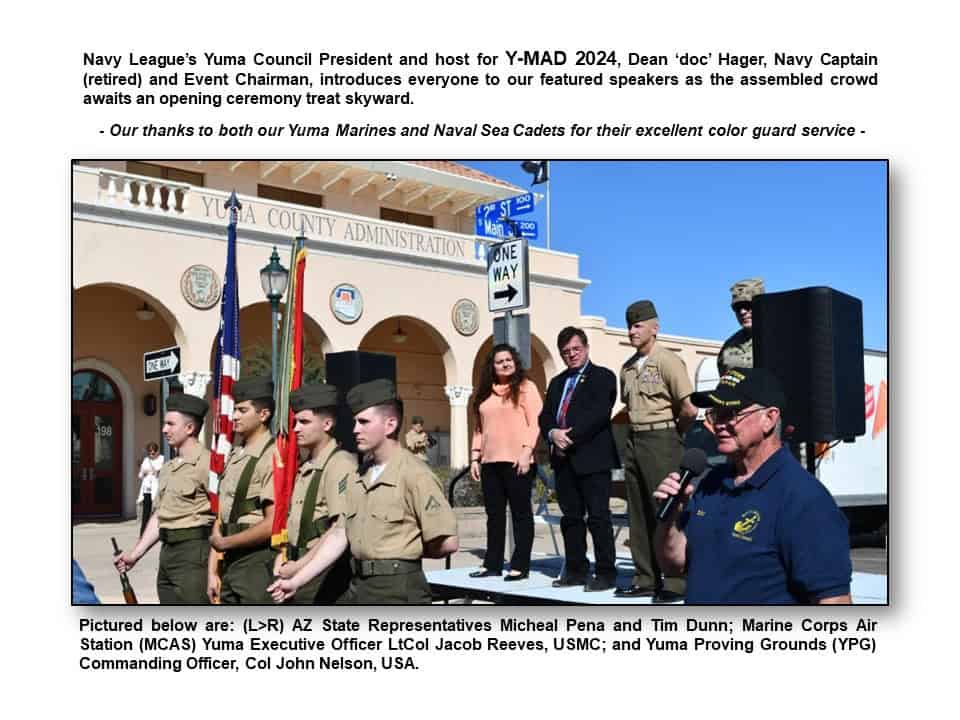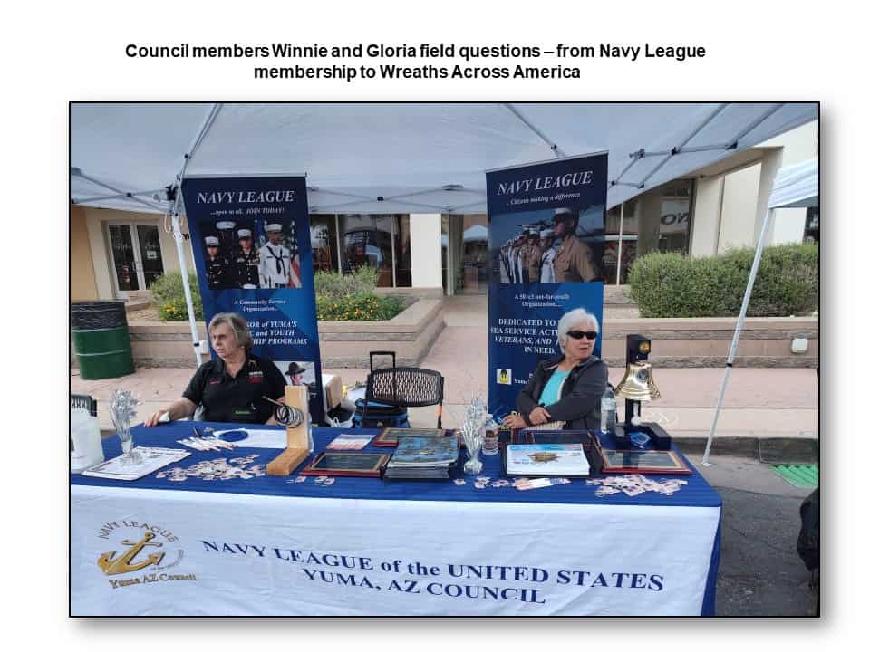 In March – after three months of hard work – the Yuma, AZ Navy League council successfully partnered with 32 local Vet services agencies, active duty Marine Corps, Army, and VA personnel to host the 6th annual Yuma Military Appreciation Day downtown Main Street.